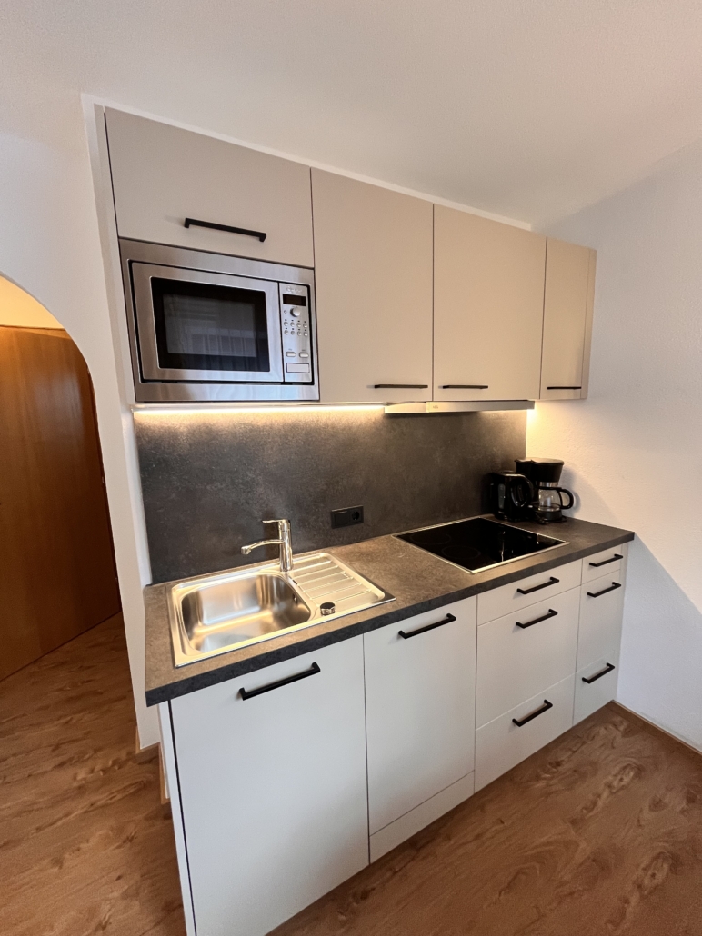 - Kochnische mit Herd, Kühlschrank,