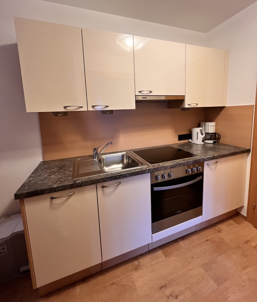 - Kochnische mit Herd, Kühlschrank,